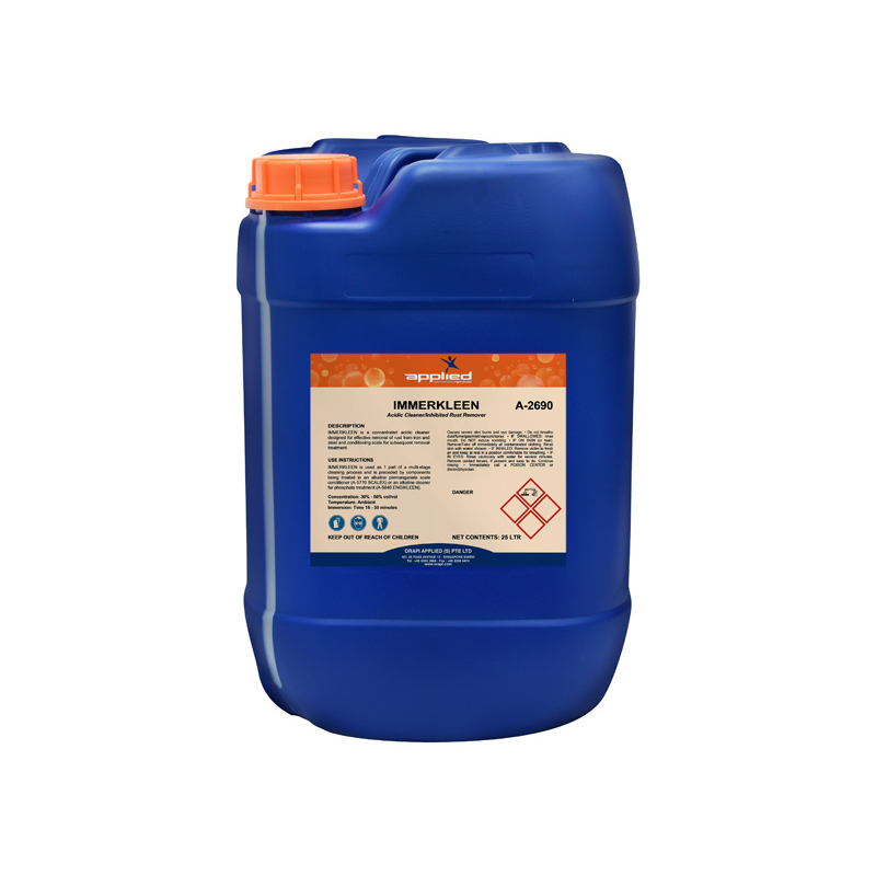 • Dissolves rust and conditioning scale on metal components in the immersion tank